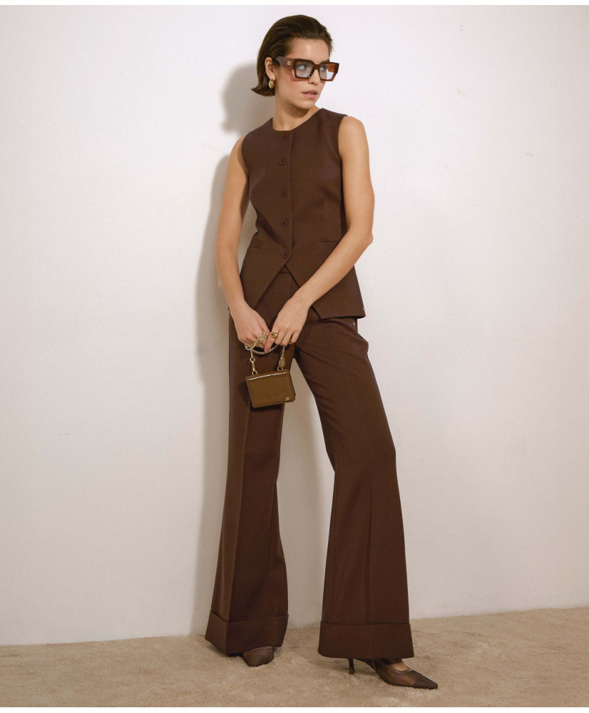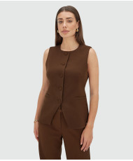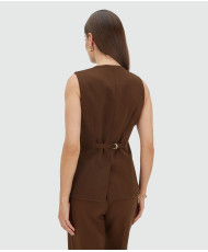 O colete feminino JOSH V Kiro na cor Marrom Escuro apresenta um corte ajustado. É confeccionado em uma confortável mistura de tecidos com lã e poliéster reciclado. Este colete faz parte de um elegante terno feminino e combina perfeitamente com o blazer Deacon e a calça Korien. Você também pode combiná-lo com elegância com uma blusa ou jeans para um look mais casual.