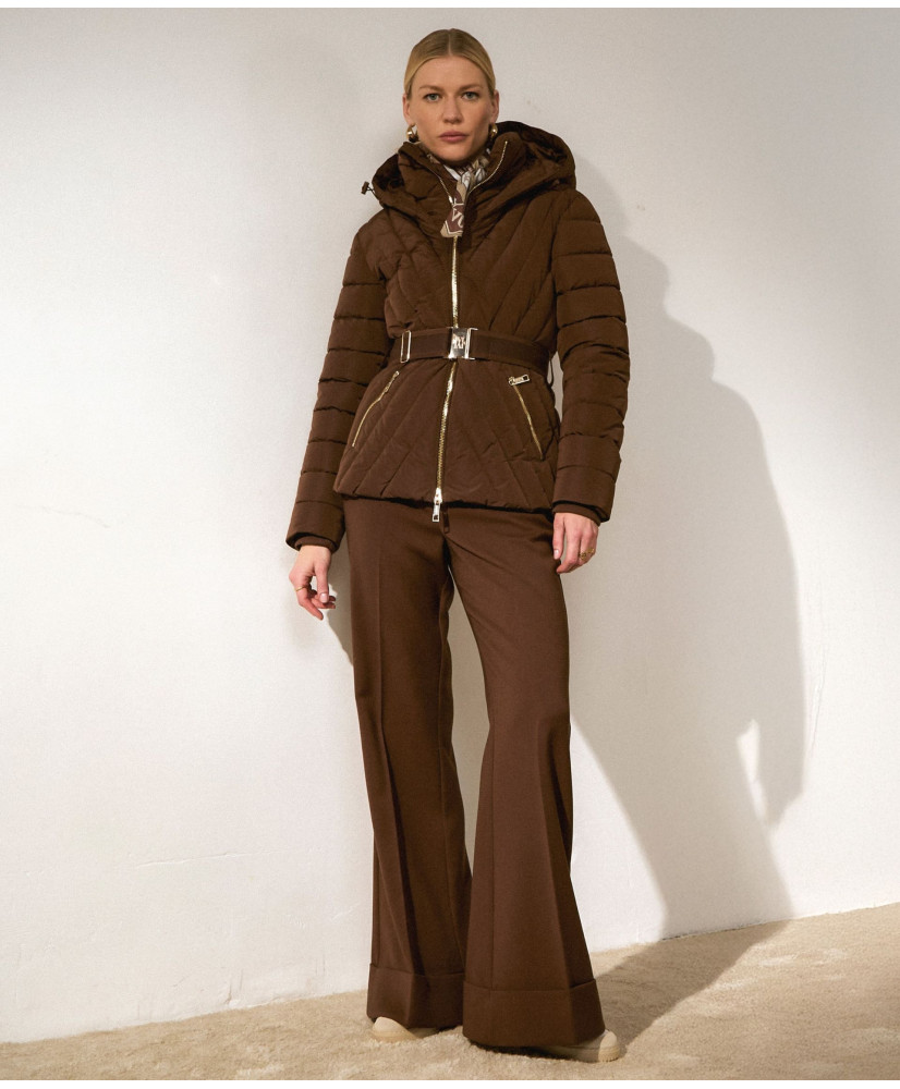 As calças femininas JOSH V Korien na cor Marrom Escuro oferecem grande versatilidade. Estas calças de cintura média com pernas boca de sino são feitas de um tecido confortável com poliéster reciclado. As calças boca de sino têm bainha dobrada e combinam perfeitamente com saltos e tênis. Elas também incluem um cinto com detalhe da marca. As calças são extensíveis. Para um terno feminino completo, combine as calças com o blazer Deacon marrom escuro da mesma cor. Elas também combinam perfeitamente com uma blusa elegante, um suéter ou uma blusa estilosa.