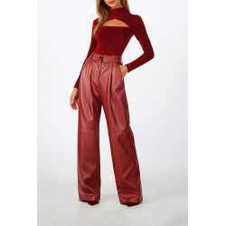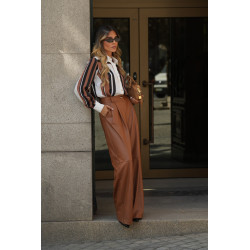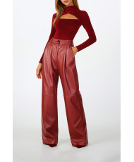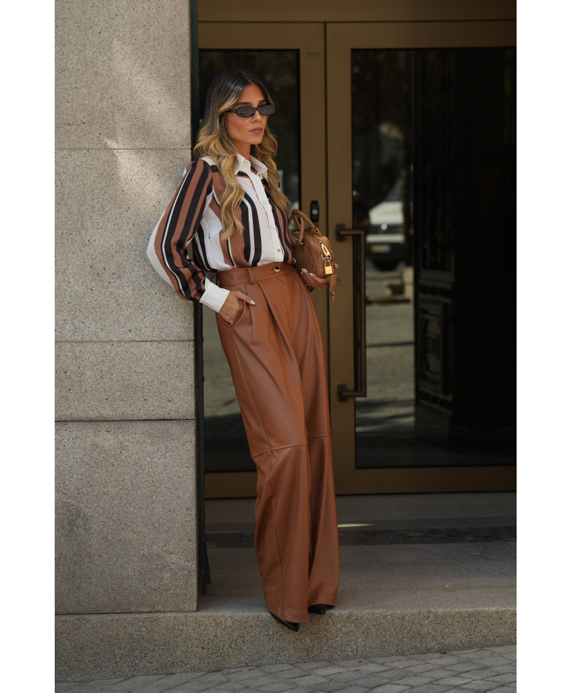 Calças com efeito de pele e cintura média.