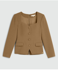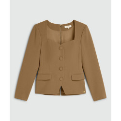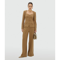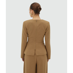A blusa feminina JOSH V Lise na cor cáqui é um modelo bustiê ajustado com mangas compridas. Esta blusa estilo blazer é confeccionada em um lindo tecido crepe com poliéster reciclado. As ombreiras e o decote coração criam um caimento impecável. A blusa fecha com um zíper dourado nas costas. Complete o conjunto combinando a blusa Lise com a calça Nellie, perfeita tanto para ocasiões formais quanto para saídas à noite. Você também pode usá-la casualmente com jeans e tênis.