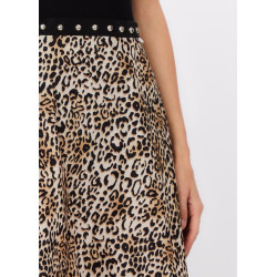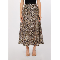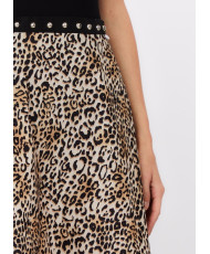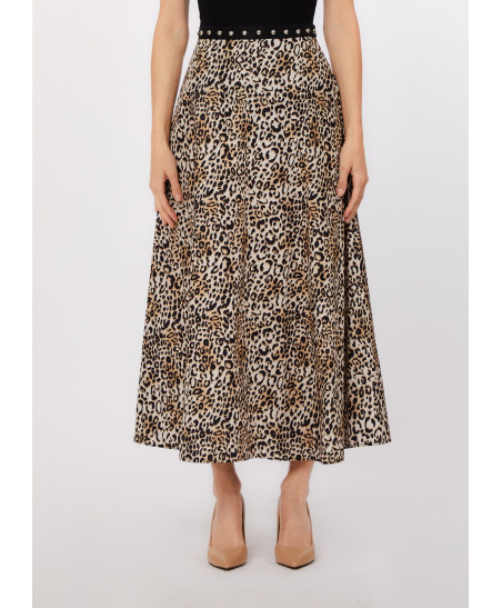 Saia Comprida Animal Print com Tachas na Cintura.
