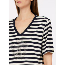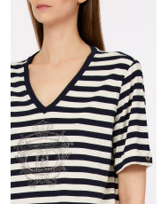 T-shirt às riscas com decote em V.