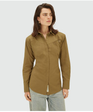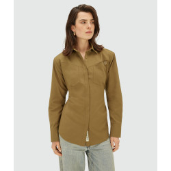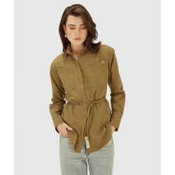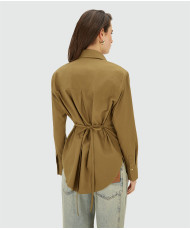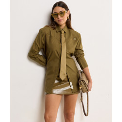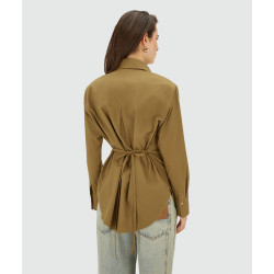 A blusa feminina JOSH V Lourdes na cor verde-oliva é uma blusa oversized com ombreiras removíveis. A blusa é confeccionada em tecido Oxford de alta qualidade com poliéster e algodão reciclados, provenientes da Better Cotton Initiative (BCI™). Detalhes exclusivos, como o emblema dourado com o logo no peito e o emblema JOSH V na carcela, completam o design. Com as alças, você pode criar um caimento mais ajustado. Perfeita para inúmeras opções de estilo: use a blusa com a saia-calça Esra da coleção Primavera ou combine-a com jeans de cintura média e salto alto para um look casual-chique.