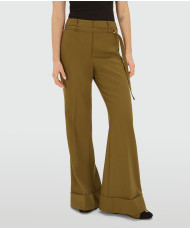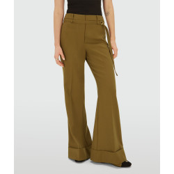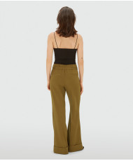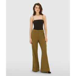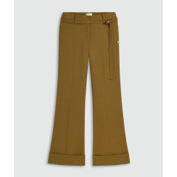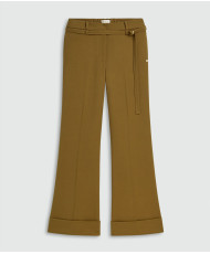 As calças femininas JOSH V Korien na cor verde-oliva oferecem infinitas possibilidades de estilo. Use as calças flare com o blazer Kanan a condizer para um conjunto feminino completo, ou combine-as com um elegante suéter verde-oliva. As calças flare verde-escuras são feitas de um tecido confortável com poliéster reciclado. As calças também são ajustáveis ​​e possuem um cinto com detalhe da marca.