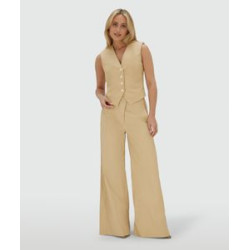 A calça feminina Regina da JOSH V, na cor Camel Claro, é de cintura média e pernas largas, com um caimento confortável e feminino. Confeccionada em algodão com elastano, proveniente da Better Cotton Initiative (BCI™), a calça possui cintura média, pernas largas, bolsos frontais e bolsos embutidos na parte de trás. O fechamento é feito por botão e zíper, e o cós é ajustável. Além disso, a barra extra longa permite ajustar o comprimento da calça. Dica: Em nossas lojas, você pode levar a calça para que seja ajustada. Combine a calça com o blazer Monet para um conjunto completo e elegante.