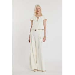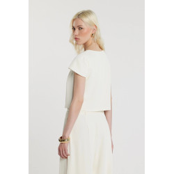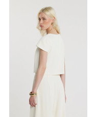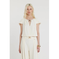 Blusa curta Capucine com mangas compridas e detalhe de logo em forma de gota e laço, um modelo sofisticado e vibrante. A blusa realça a elegância, enquanto o logo confere modernidade e um charme de alta costura. Perfeita para o dia a dia.