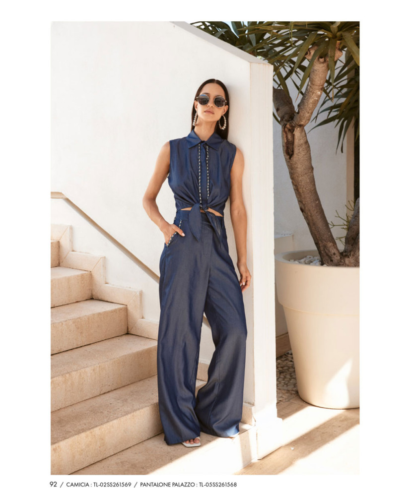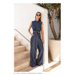 Pantalonas de Tecido com Brilhantes nos Bolsos.