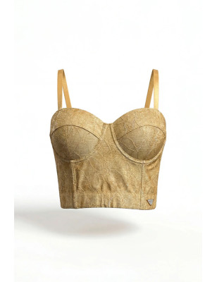 Top tipo corset com decote coração e copas estruturadas. Alças ajustáveis e fecho posterior com colchetes para melhor suporte e ajuste. Detalhe de placa com logótipo na frente.