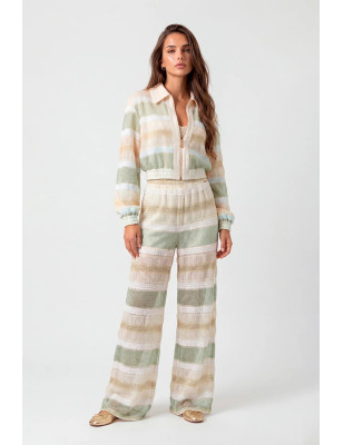 Casaco estilo bomber com gola de lapela e manga comprida. Apresenta bolsos frontais com vivo e acabamentos em punhos e bainha elásticos, que garantem conforto e ajuste. Fecho frontal com zíper para maior praticidade. Uma peça moderna e versátil para o dia a dia.