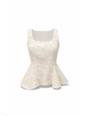 Top assimétrico com bordados e delicados detalhes de lantejoulas, que acrescentam brilho subtil à peça. Apresenta decote redondo e manga cava, conferindo-lhe uma silhueta moderna e elegante. O fecho de correr oculto nas costas garante um acabamento limpo e sofisticado.